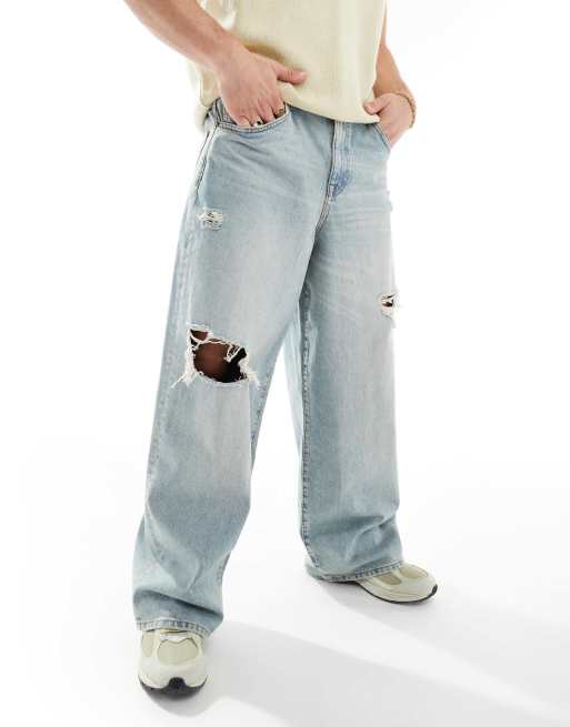 ASOS DESIGN – Weite Baggy-Jeans in heller Waschung mit Zierrissen und Abnutzungen
