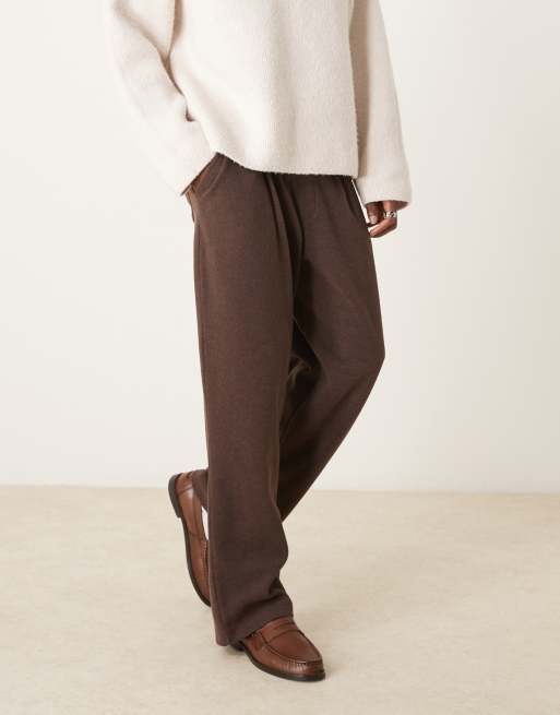 ASOS DESIGN – Weite, elegante Jogginghose in Braun mit angerauter Ripp-Struktur