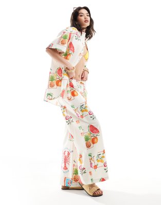 ASOS DESIGN – Weite Hose aus Leinen-Mix mit Postkarten-Printmuster, Kombiteil