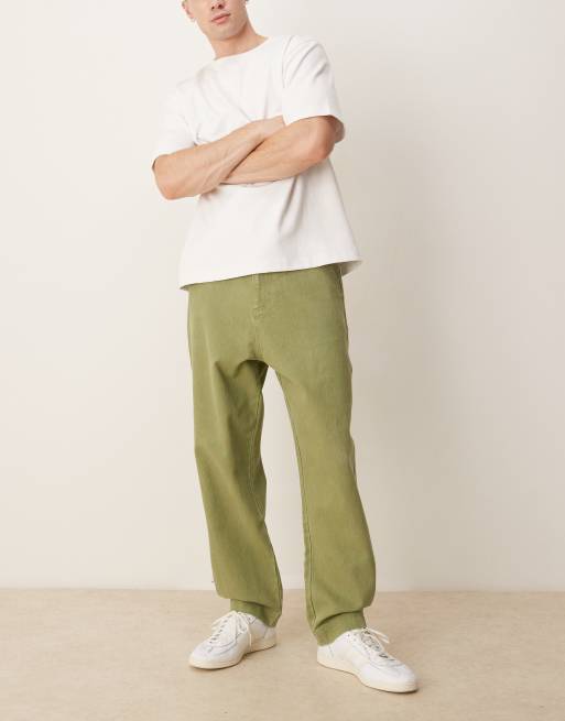 ASOS DESIGN – Weite Hose in Khaki mit Gesäßtaschen-Detail