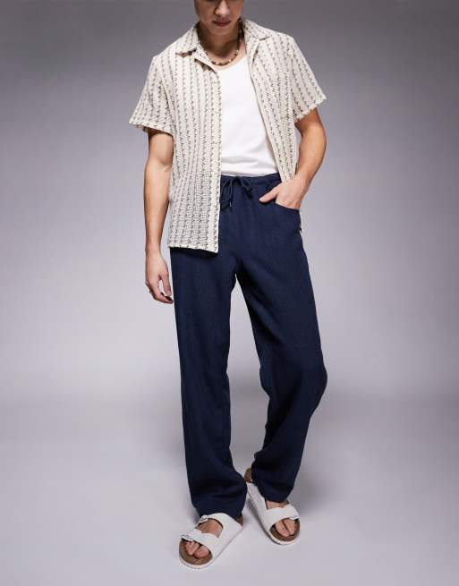 ASOS DESIGN – Weite Hose in Marineblau mit Tunnelzug
