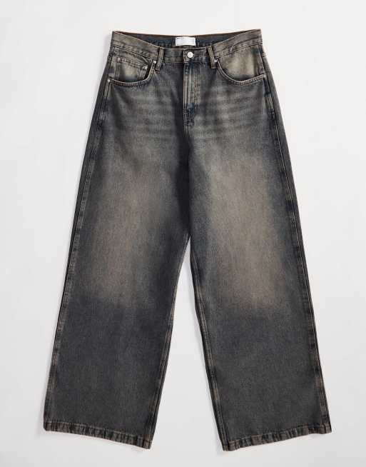ASOS DESIGN – Weite Jeans in mittlerer Waschung mit weitem Saum