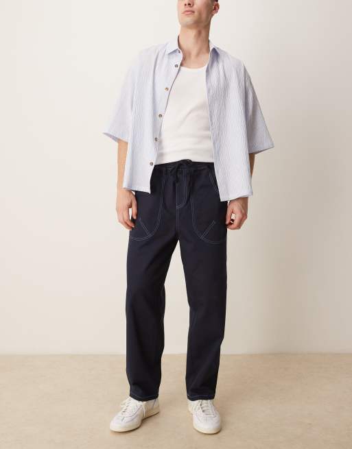ASOS DESIGN – Weite Nylon-Hose in Marineblau mit Kontrastnaht