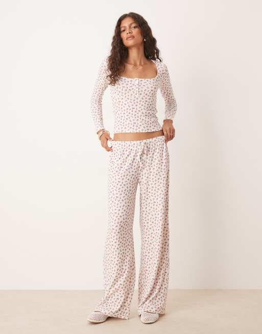 ASOS DESIGN – Weite Pointelle-Hose mit Blümchenmuster, Kombiteil