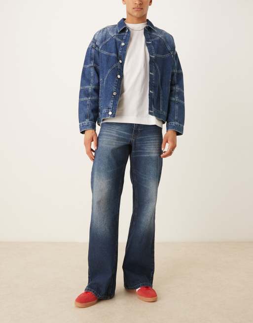 ASOS DESIGN – Weite Schlagjeans mit Tönung in verwaschenem Dunkelblau