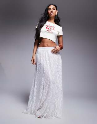 ASOS DESIGN – Weiter Maxirock aus elfenbeinweißer Spitze mit Godet-Detail