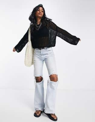 ASOS DESIGN – Weitmaschiger Pullover in Schwarz