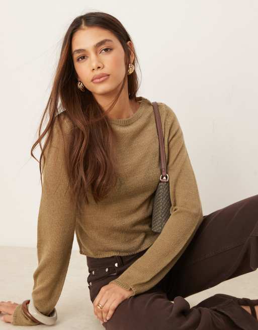 ASOS DESIGN – Weitmaschiger Strickpullover in Mokka mit Rundhalsausschnitt