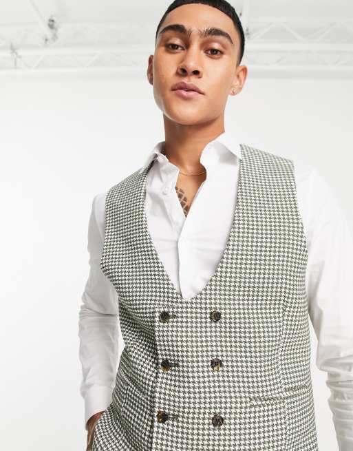 ASOS DESIGN – Weste mit superengem Schnitt und Hahnentrittmuster in Khaki