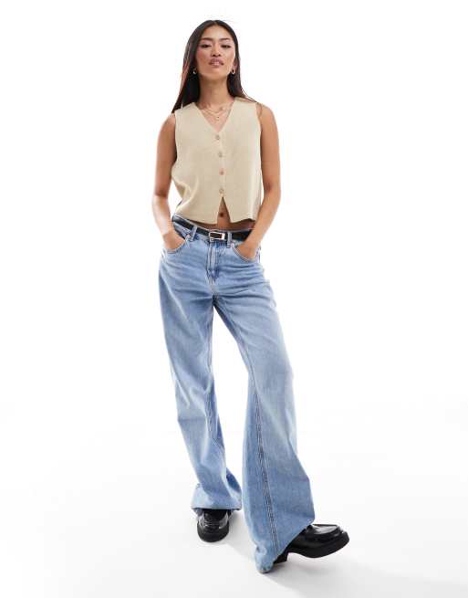 ASOS DESIGN – Westen-Top aus Strick in Stein mit V-Ausschnitt