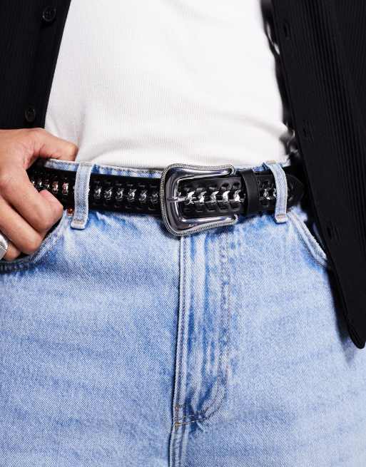 ASOS DESIGN – Western-Gürtel aus schwarzem Kunstleder mit Kettendetail