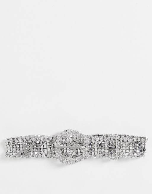 ASOS DESIGN – Westerngürtel aus Kettengeflecht und Strasssteinen in Silber