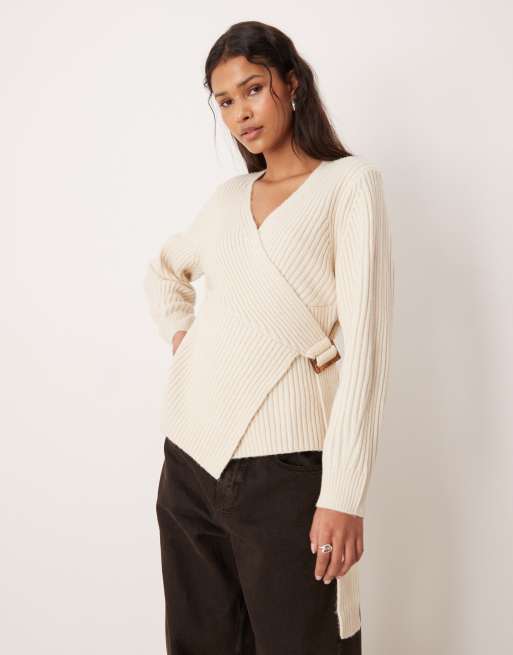 ASOS DESIGN – Wickel-Strickjacke in Hellbeige