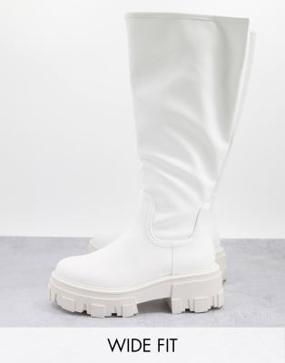 ASOS DESIGN Wide Fit – Carla – Flache Stiefel mit dicker Sohle in Weiß, weite Passform