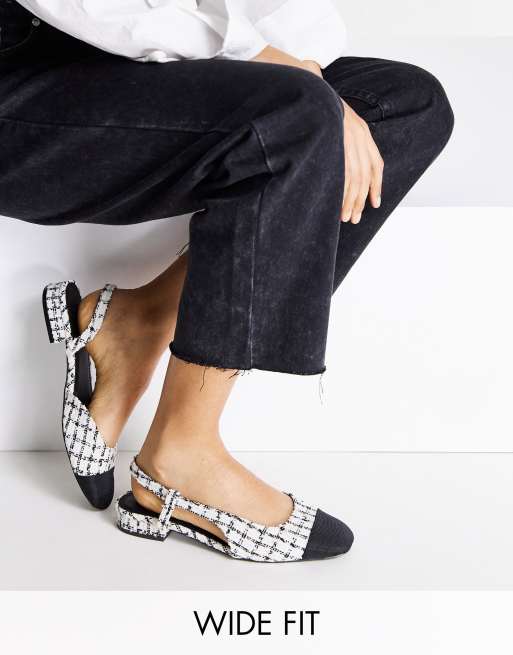 ASOS DESIGN Wide Fit – Lively – Ballerinas aus cremeweißem Tweed mit Fersenriemen, weite Passform