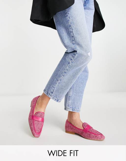 ASOS DESIGN Wide Fit – Megan – Gewebte flache Loafer in Rosa, weite Passform