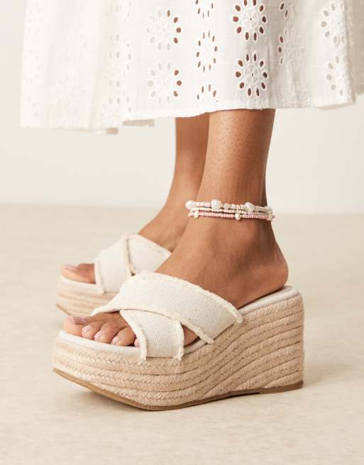 ASOS DESIGN Wide Fit – Twirl – Sandalen in Natur mit überkreuzten Riemen und Keilabsatz, weite Passform