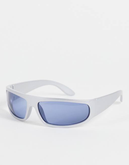 ASOS DESIGN – Wrap-Around-Sonnenbrille im Stil der 90er in Silberoptik