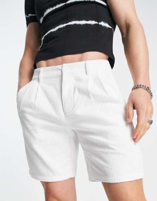 ASOS DESIGN – Zigaretten-Shorts aus Cord in Weiß