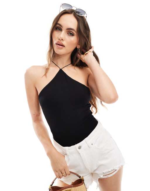 ASOS DESIGN – Zweilagiger Neckholder-Body in Schwarz mit Spaghettiträgern
