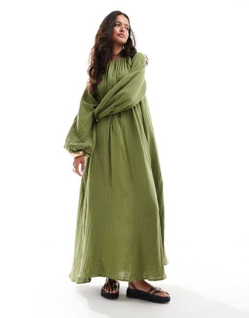 ASOS DESIGN – Zweilagiges, trapezförmiges Maxikleid in Olivgrün