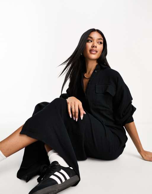 ASOS DESIGN – Zweilagiges übergroßes Maxi-Hemdkleid in Schwarz
