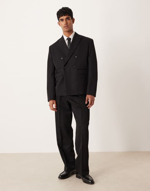ASOS DESIGN – Zweireihiger Anzug in Schwarz mit kastigem Schnitt