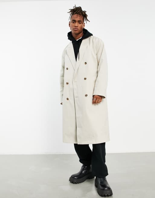 ASOS DESIGN – Zweireihiger Oversize-Trenchcoat in Stone