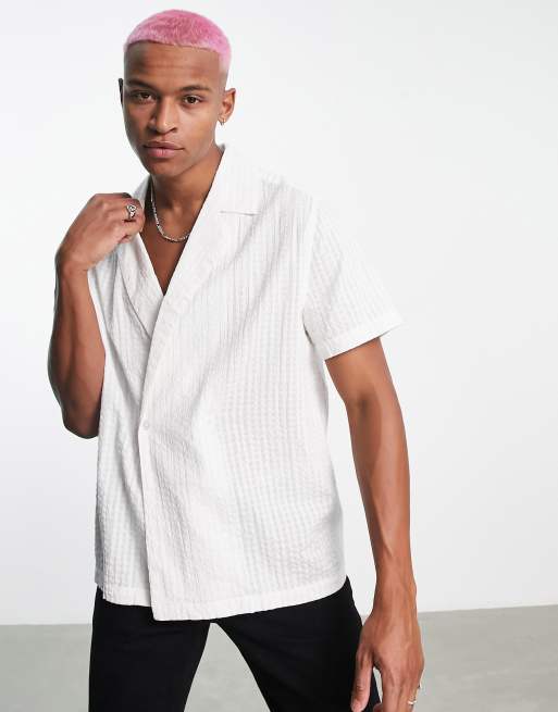ASOS DESIGN – Zweireihiges. locker geschnittenes Hemd aus strukturierter Baumwolle