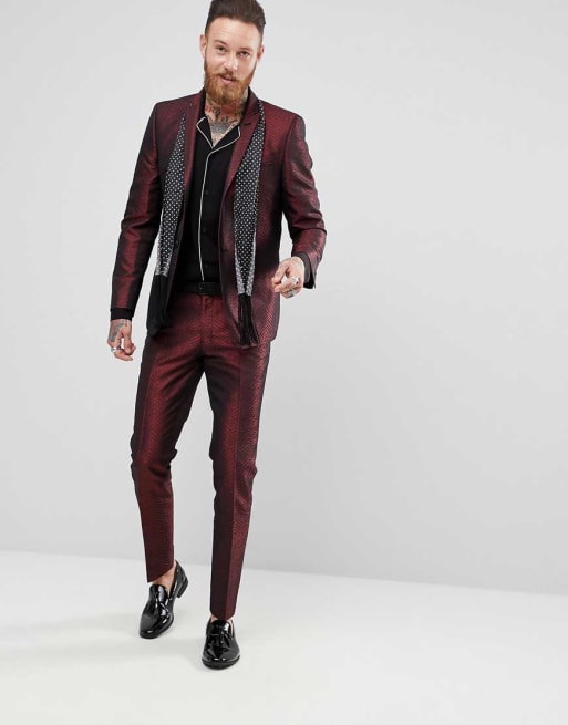 ASOS – Enger Anzug in Rot aus Lava-Jacquard