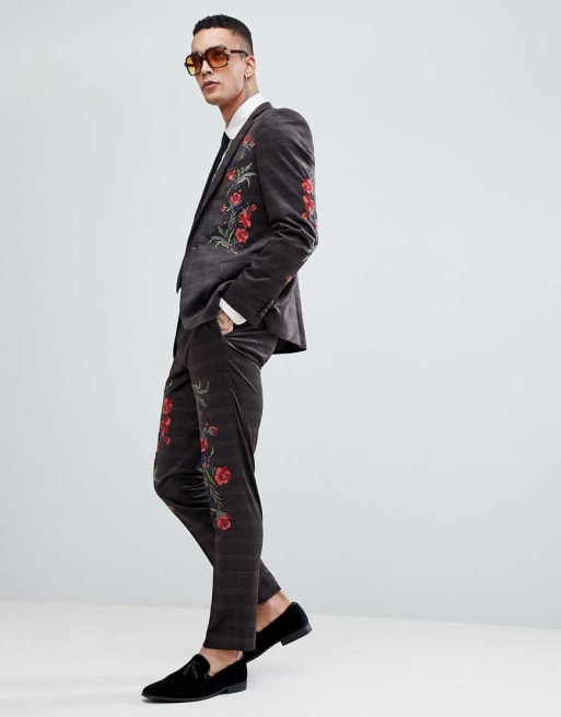 ASOS – Enger, karierter Samtanzug mit Blumenstickerei