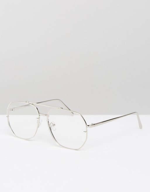 ASOS – Geeky – Pilotenbrille mit sechseckigem Design und klaren Gläsern