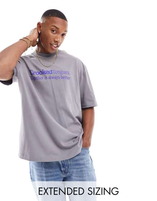 ASOS – Hochwertiges, übergroßes T-Shirt in Grau mit „Crooked Tongues“-Logo-Print auf der Brust