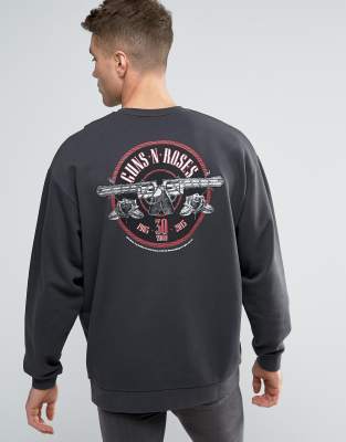ASOS – Oversize-Sweatshirt mit geripptem Ausschnitt und Guns N Roses-Print