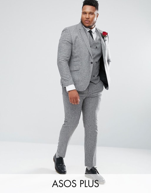 ASOS PLUS – Enger Hochzeitsanzug aus 100% Seide in strukturiertem Grau