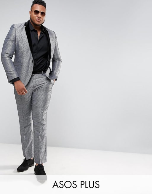 ASOS PLUS – Schmaler Smoking mit Leoprint in Silber