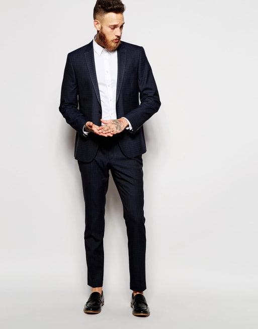 ASOS – Schmal geschnittener Anzug mit marineblauem Karomuster