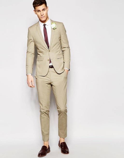 ASOS – Schmaler Popeline-Hochzeitsanzug in Stone