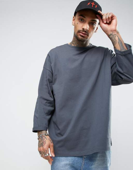 ASOS – Schweres Super-Oversize-T-Shirt mit 3/4-langen, aufgerollten Ärmeln in Grau