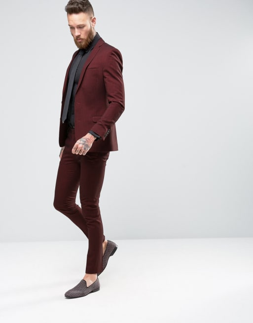 ASOS – Sehr enger Anzug mit verdrehtem Design in Burgunderrot