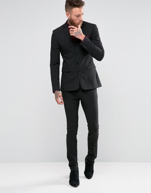ASOS – Sehr enger Anzug mit vier Knöpfen, schwarz