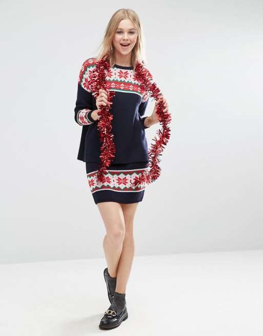 ASOS – Strickrock und -pullover in weihnachtlichem Fairisle-Muster als Kombiteil