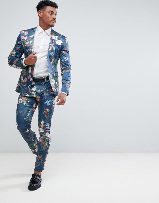 ASOS – Superenger Anzug in Blau mit Blumenmuster