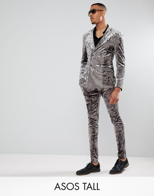 ASOS TALL – Superenger, zweireihiger Smoking aus grauem Knittersamt