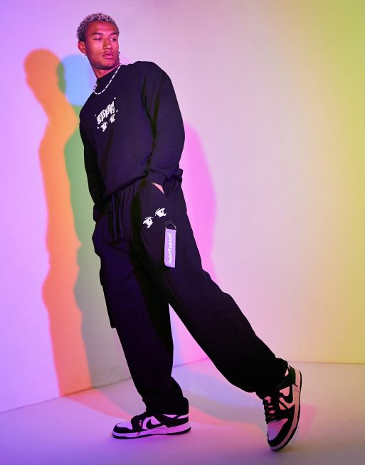 ASOS Unrvlld Spply – Oversize-Jogginghose in Schwarz mit Tasche und Riemendetail