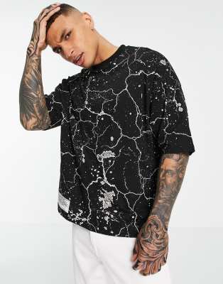 ASOS – Unrvlld Spply – Oversize-T-Shirt mit All-over-Kartenprint in Schwarz