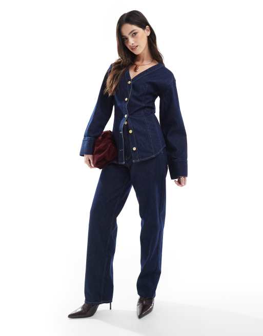 Set aus Denim in Rinse-Waschung mit weitem Bein