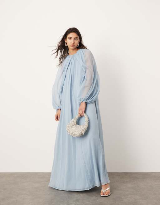 ASOS EDITION – Chiffon-Maxikleid in Puderblau mit voluminösen Ärmeln