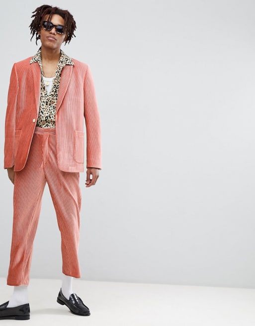 ASOS EDITION – Enger, plissierter Anzug aus rosa Samt