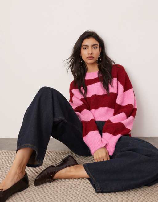 ASOS EDITION – Gestreifter Oversize-Strickpullover in Rosa und Rot mit Rundhalsausschnitt